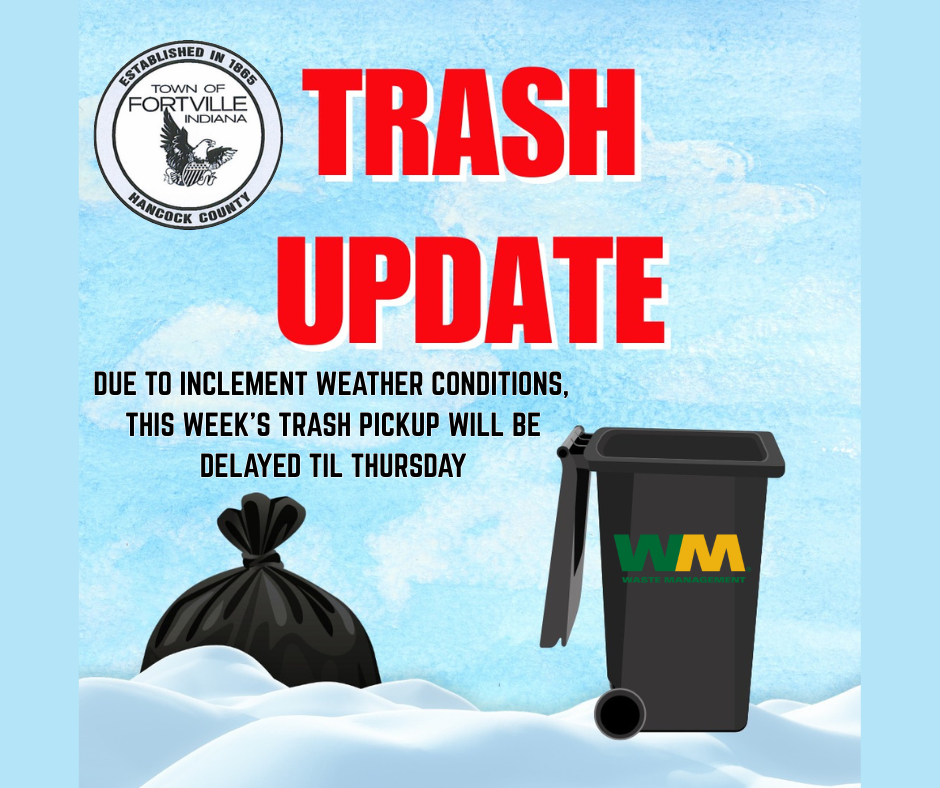 Due to inclement weather, this week's trash pickup will be delayed til Thursday.